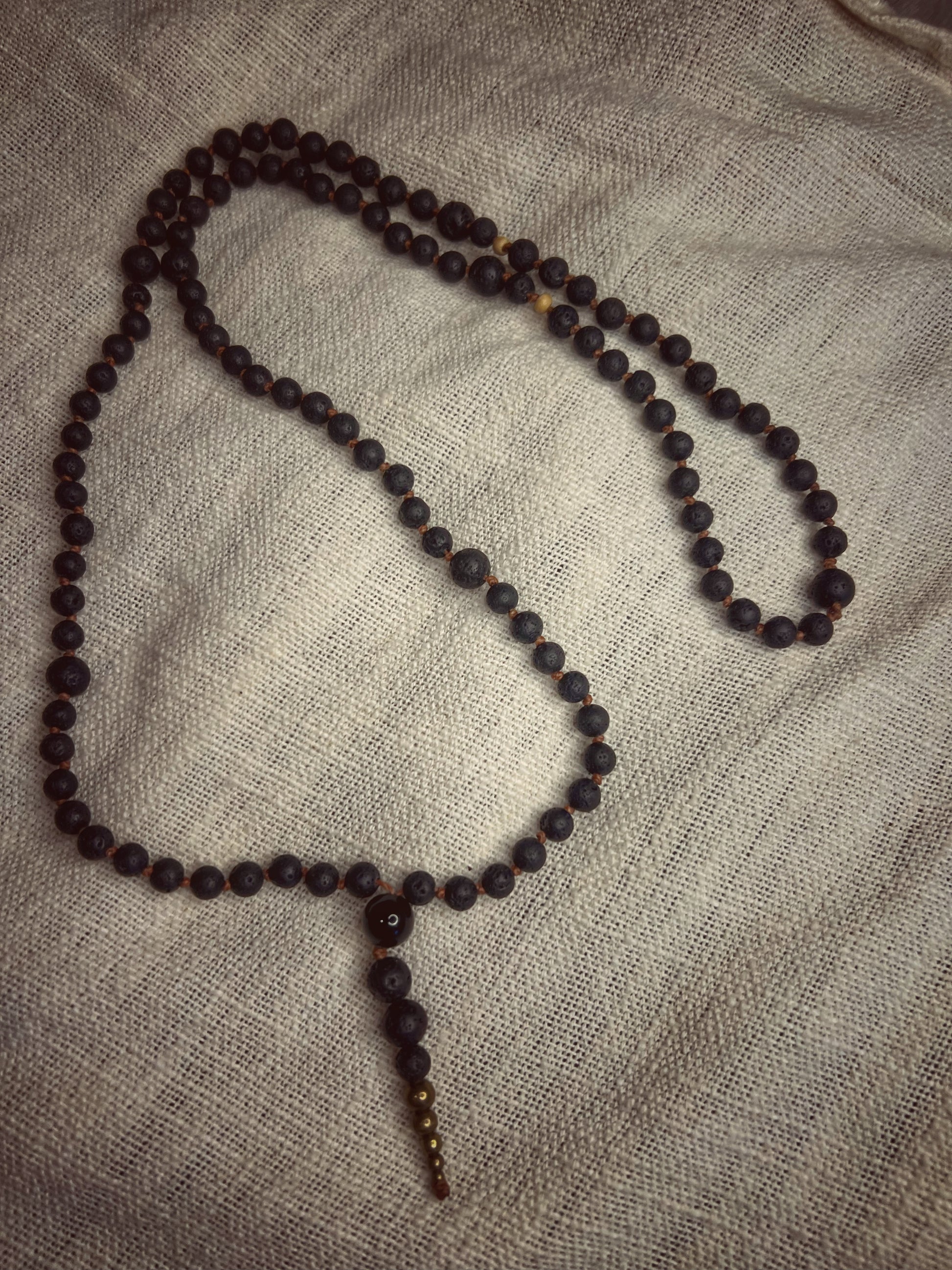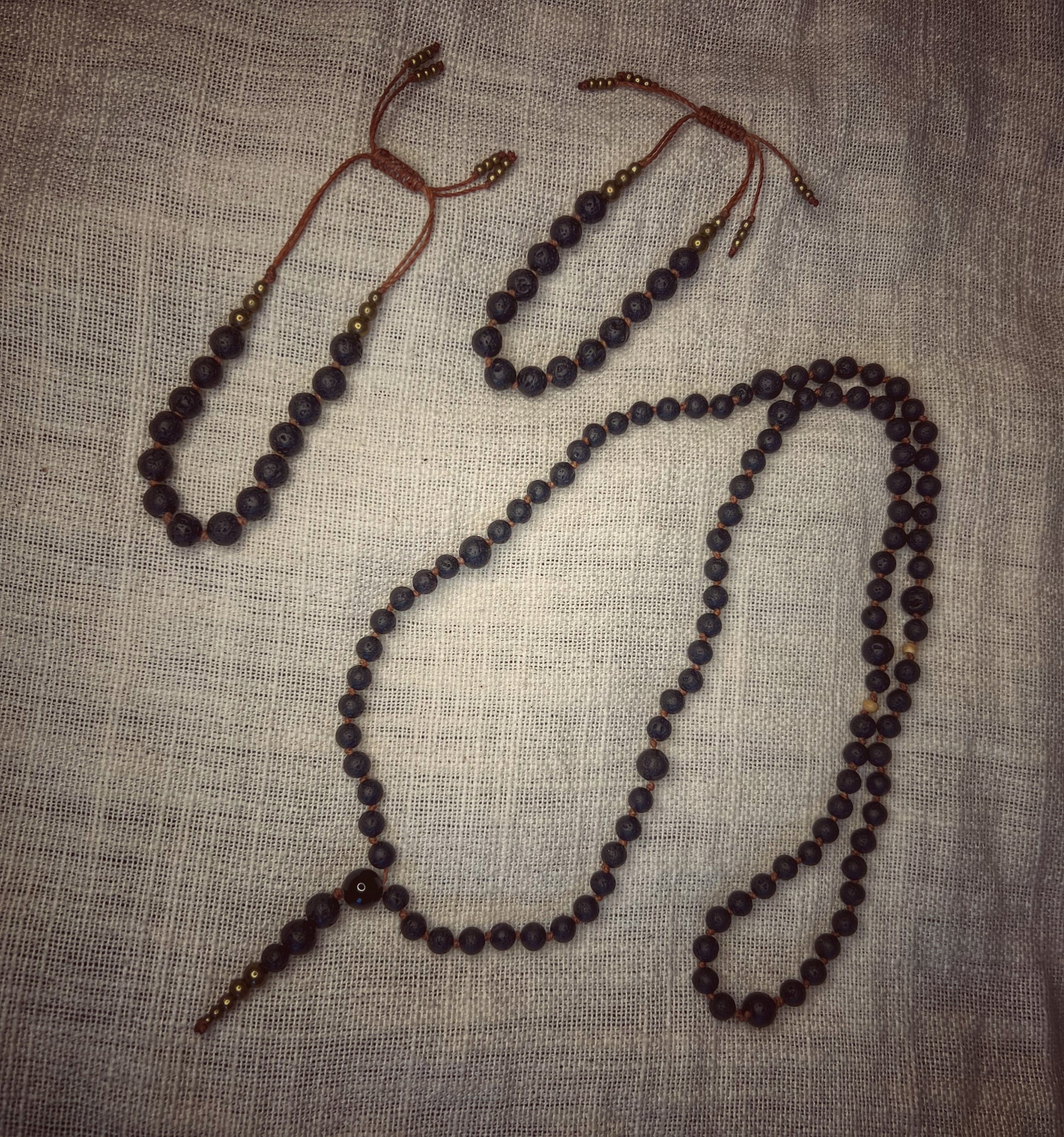 Hand-crafted with natural black lava stone beads, these prayer beads and bracelet carry a quiet strength and grounding presence. Lava stone is formed from cooled molten rock, holding the energy of fire transformed into stillness, a symbol of resilience, release, and renewal.